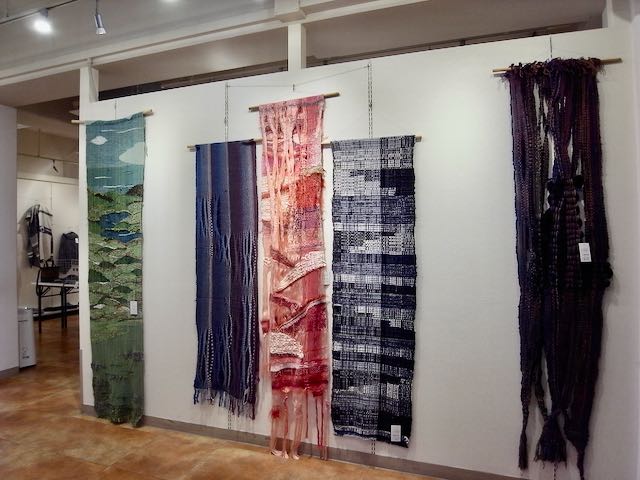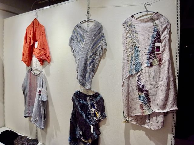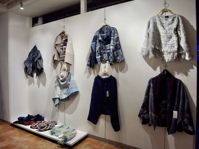 手織の優しい感触が伝わってくる、とても素敵な洋服やマフラーなどの作品展でした。