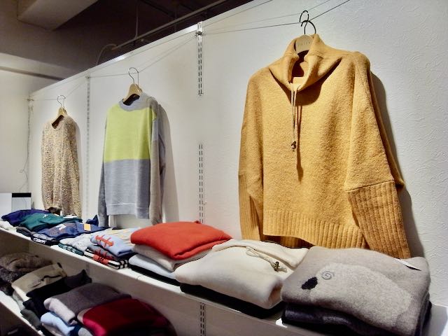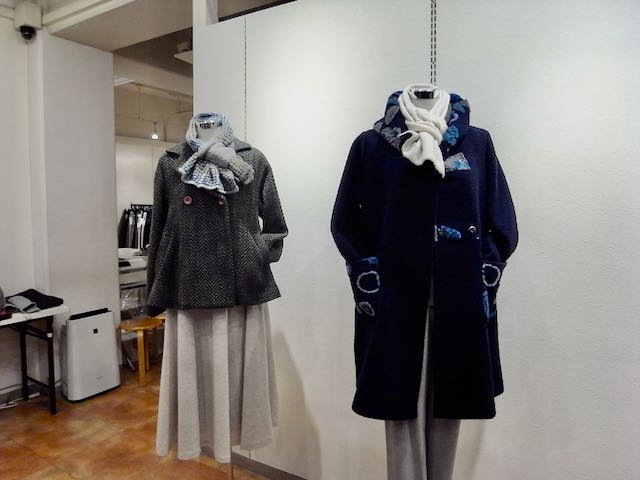 冬物の、とても暖かそうな色合いのお洋服を展示頂きました。